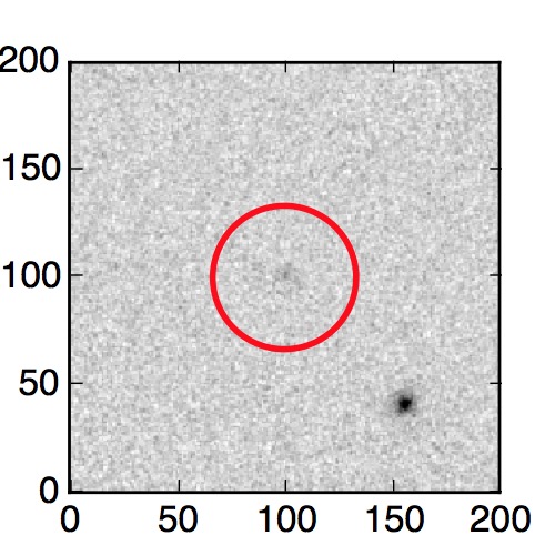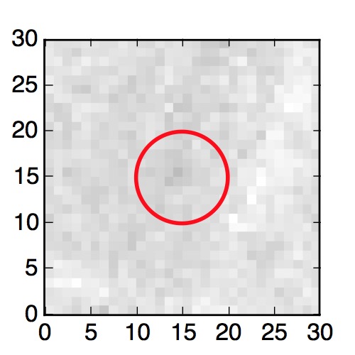 The red circle in the various panels is 1" in radius. The images are 6"x6".
