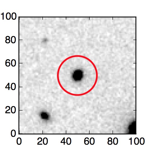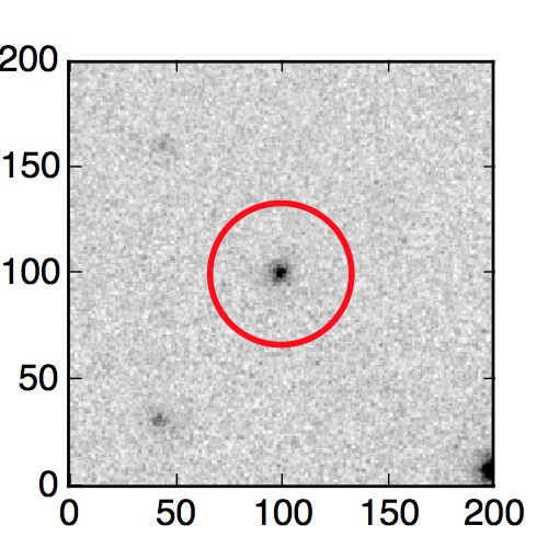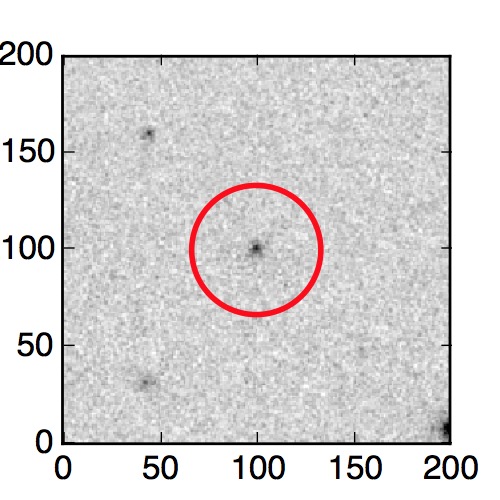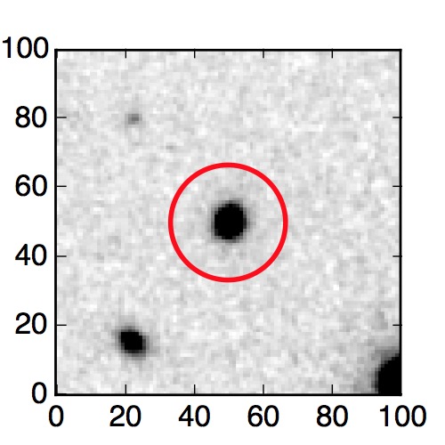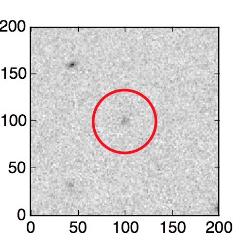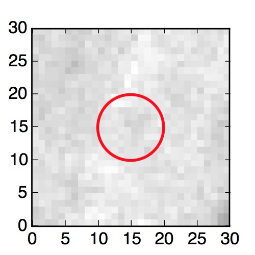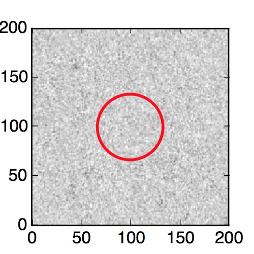The red circle in the various panels is 1" in radius. The images are 6"x6".