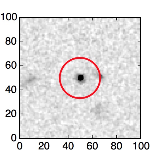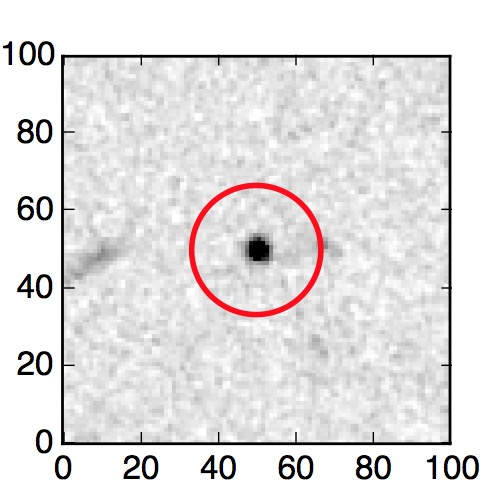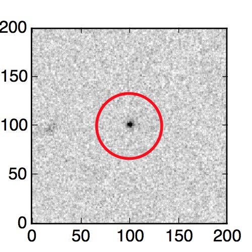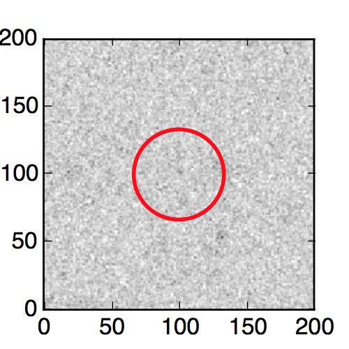 The red circle in the various panels is 1" in radius. The images are 6"x6".