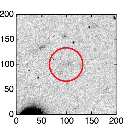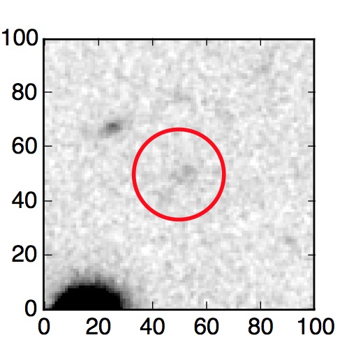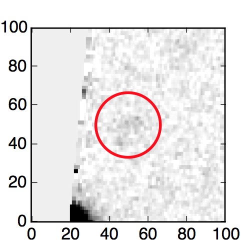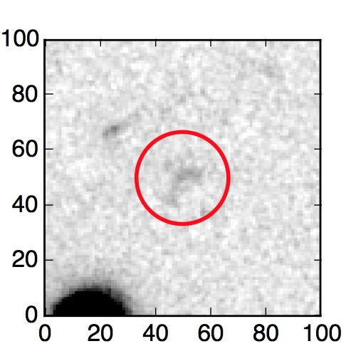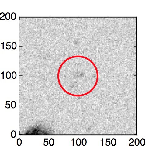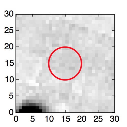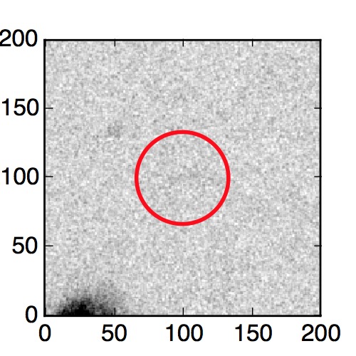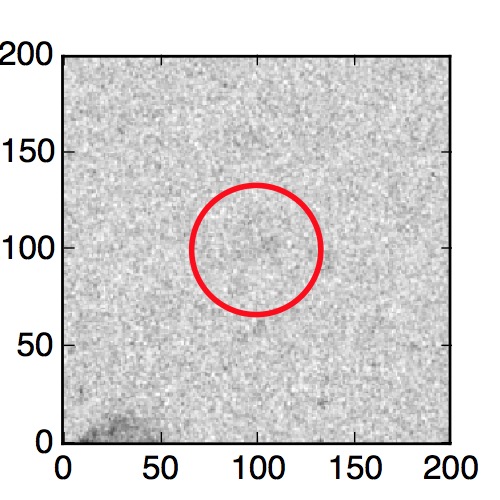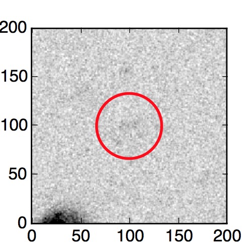 The red circle in the various panels is 1" in radius. The images are 6"x6".