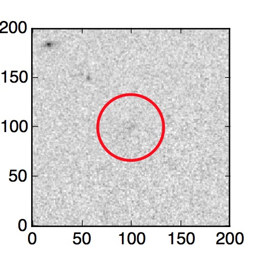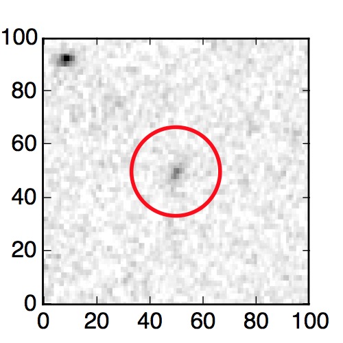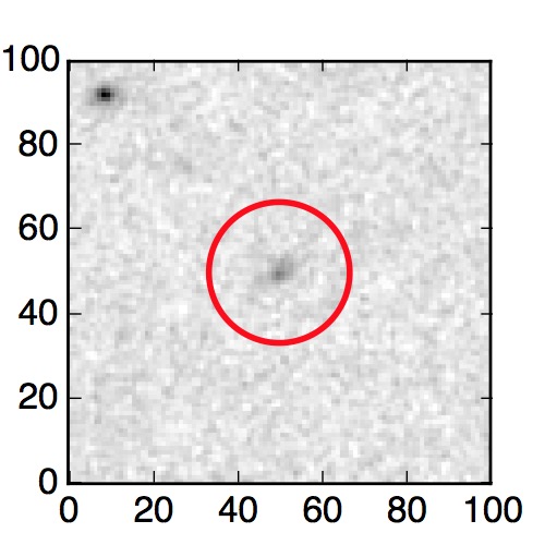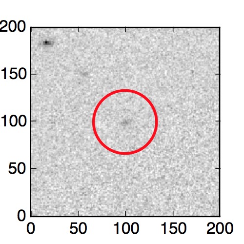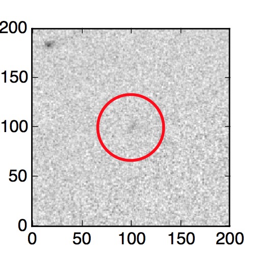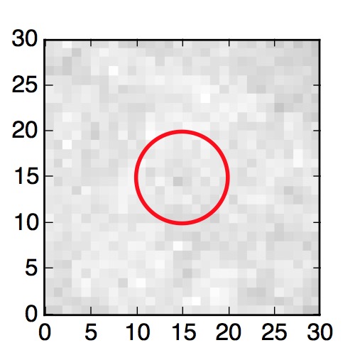 The red circle in the various panels is 1" in radius. The images are 6"x6".