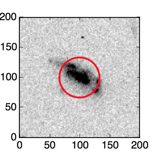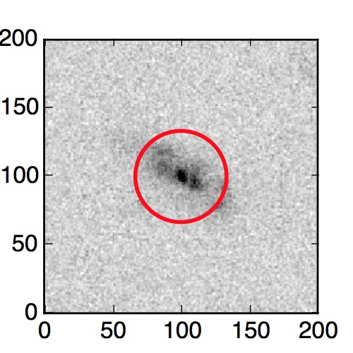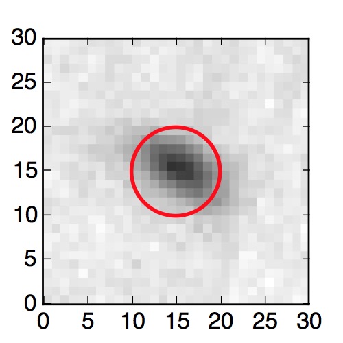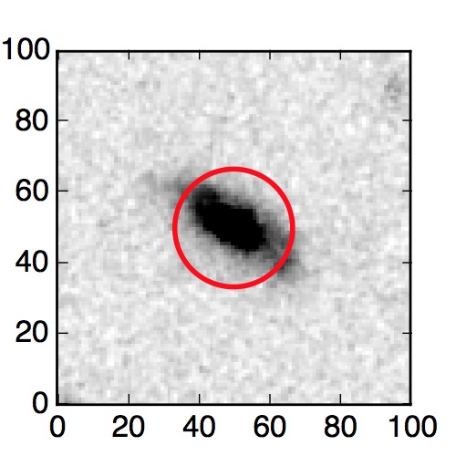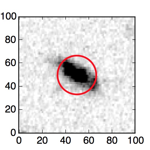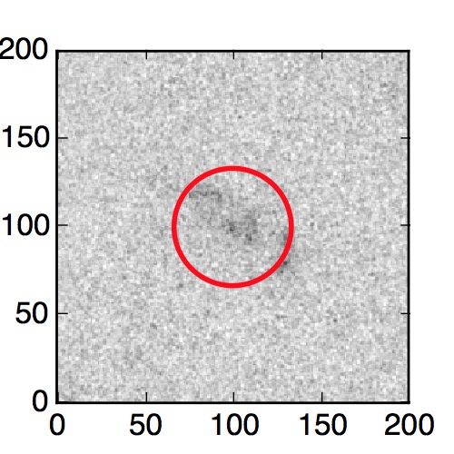 The red circle in the various panels is 1" in radius. The images are 6"x6".