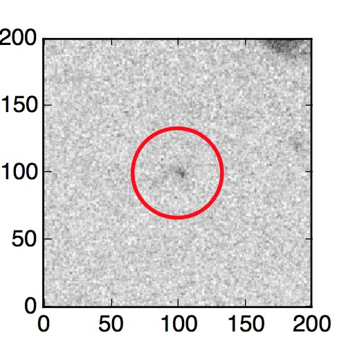 The red circle in the various panels is 1" in radius. The images are 6"x6".
