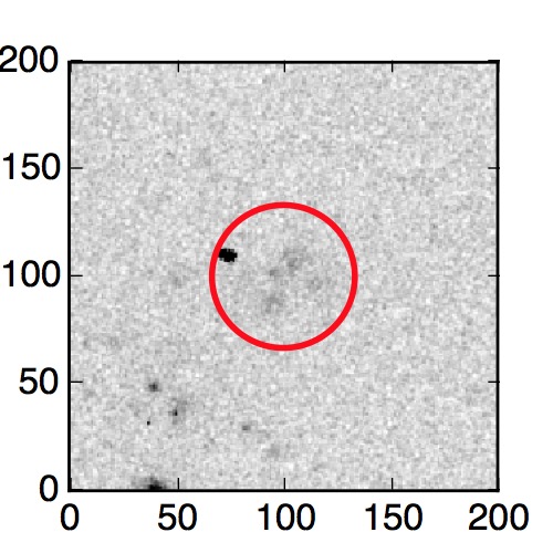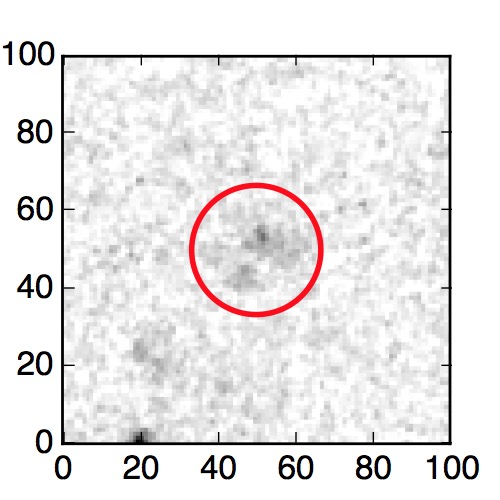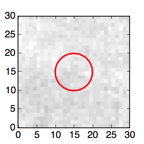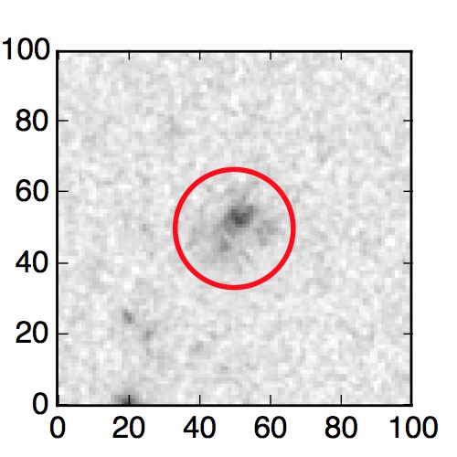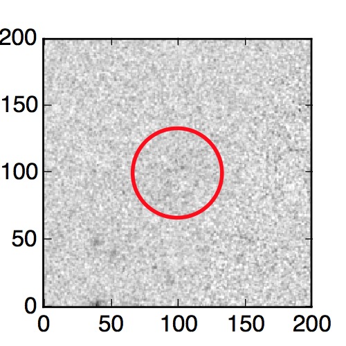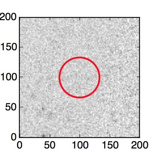 The red circle in the various panels is 1" in radius. The images are 6"x6".