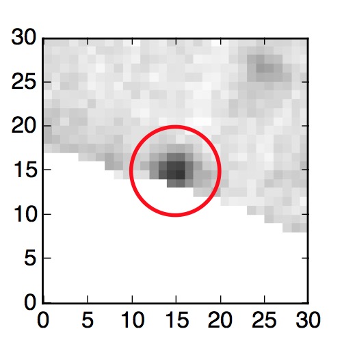 The red circle in the various panels is 1" in radius. The images are 6"x6".