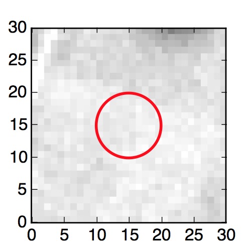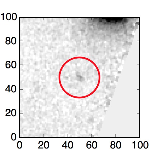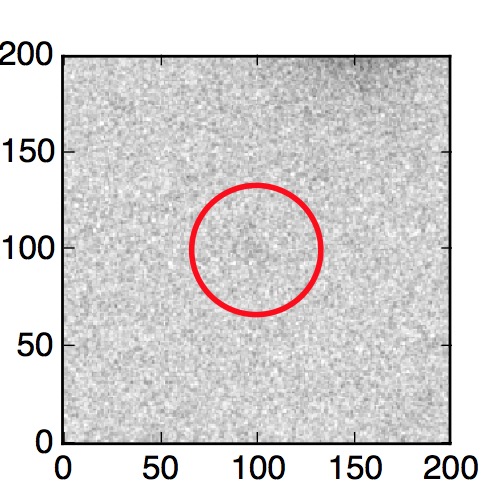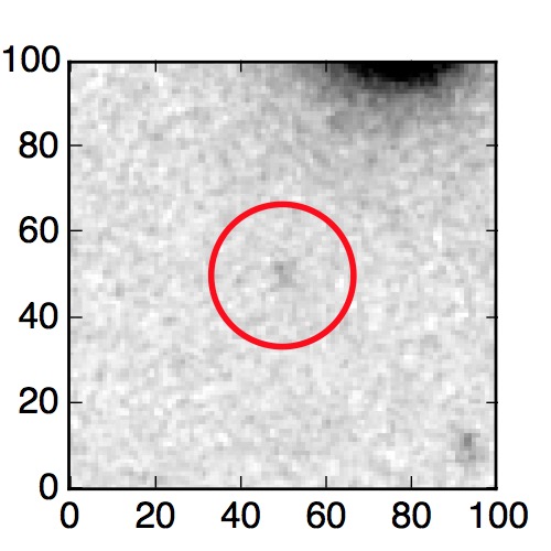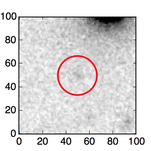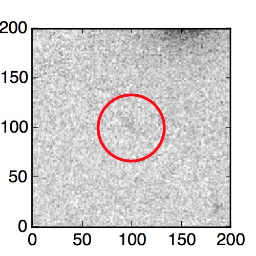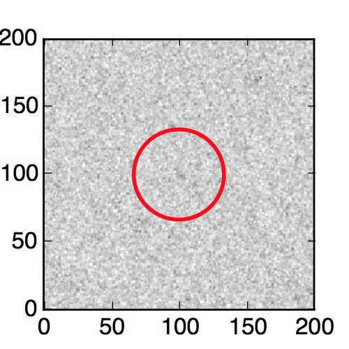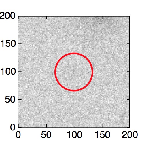 The red circle in the various panels is 1" in radius. The images are 6"x6".