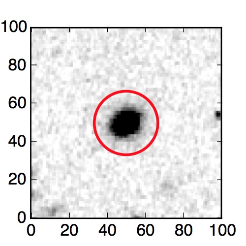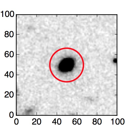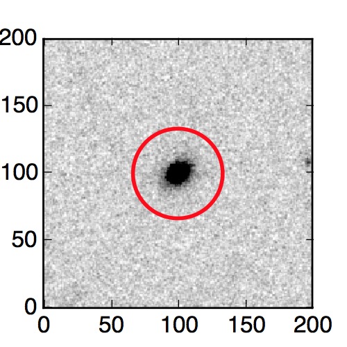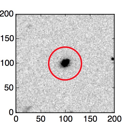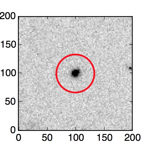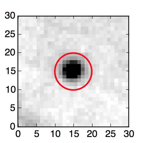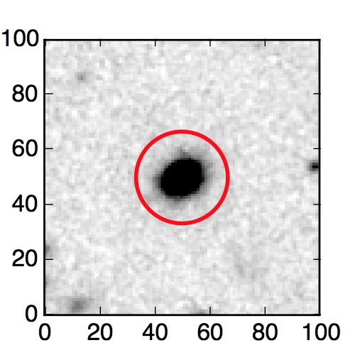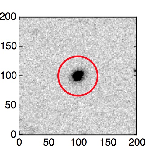 The red circle in the various panels is 1" in radius. The images are 6"x6".