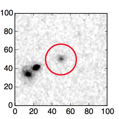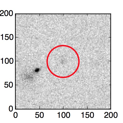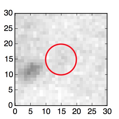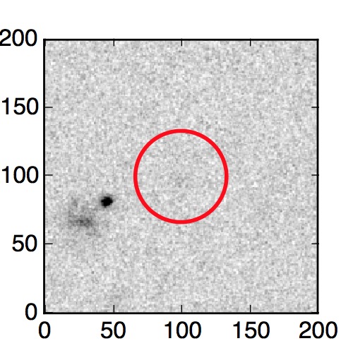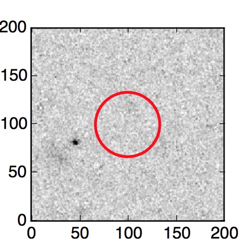 The red circle in the various panels is 1" in radius. The images are 6"x6".