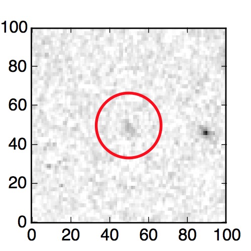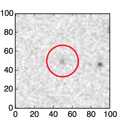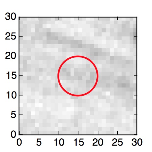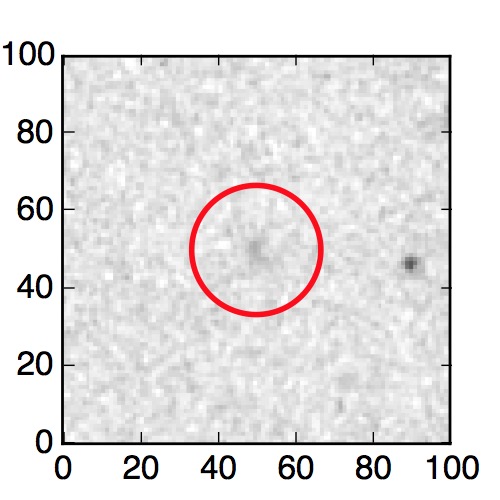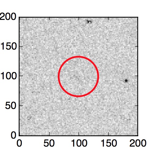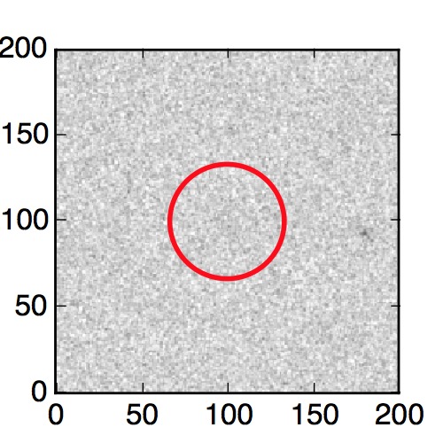 The red circle in the various panels is 1" in radius. The images are 6"x6".