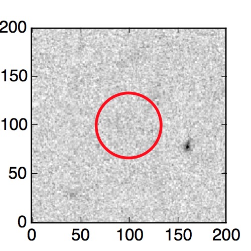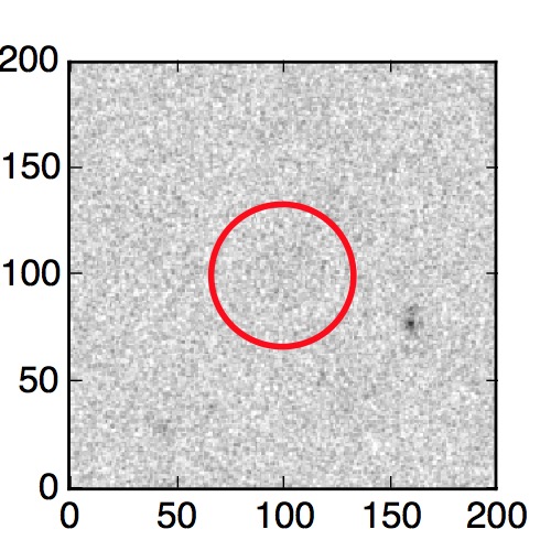 The red circle in the various panels is 1" in radius. The images are 6"x6".
