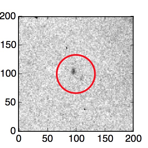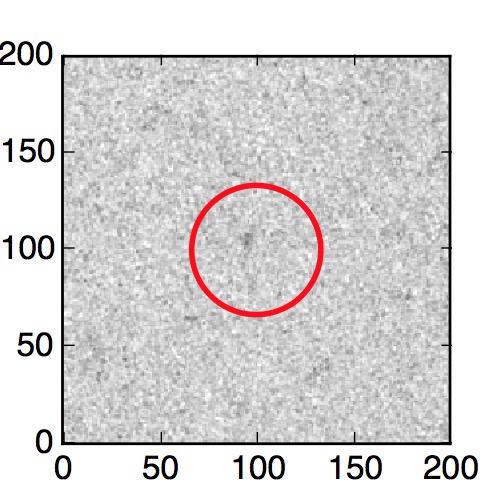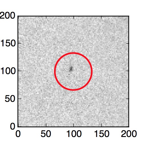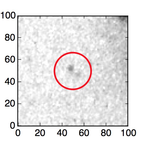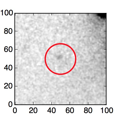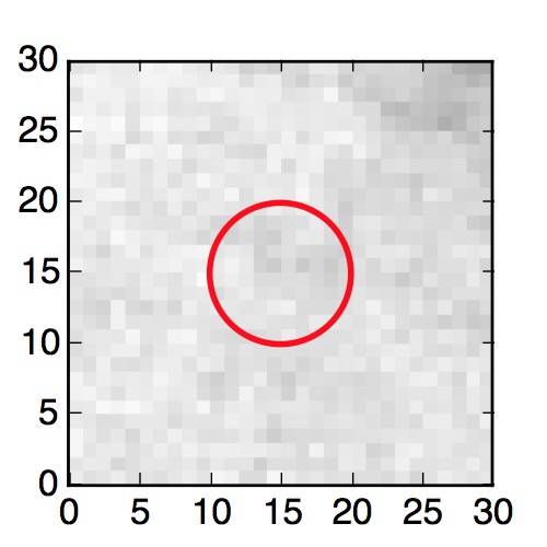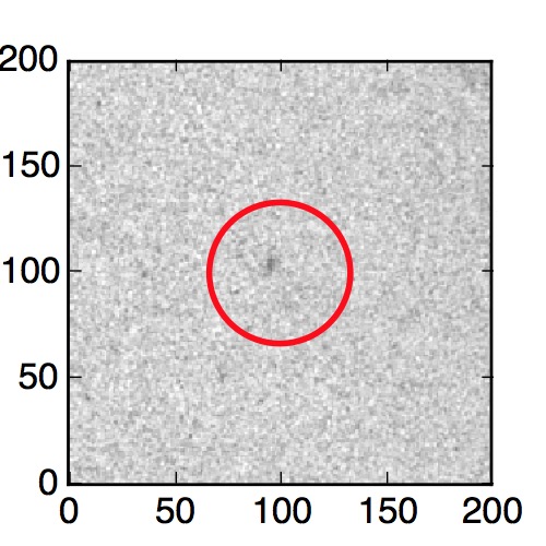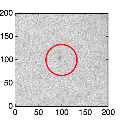 The red circle in the various panels is 1" in radius. The images are 6"x6".