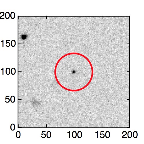 The red circle in the various panels is 1" in radius. The images are 6"x6".