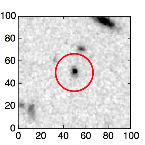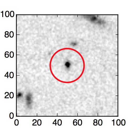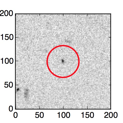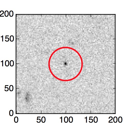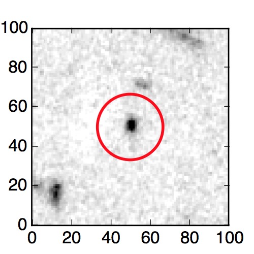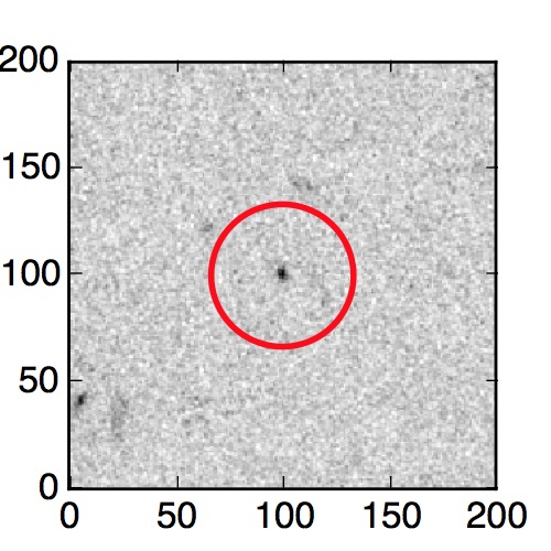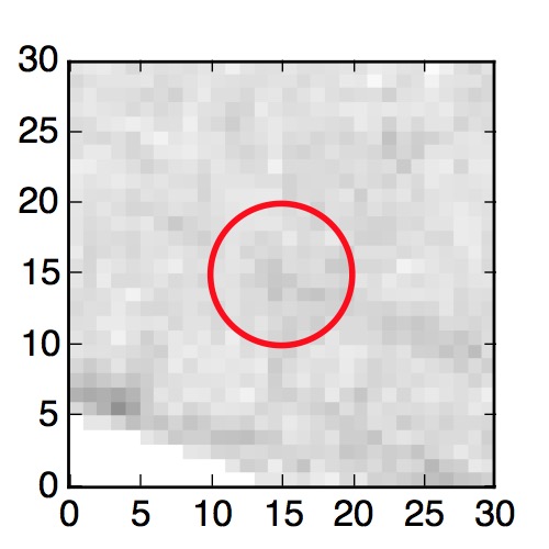 The red circle in the various panels is 1" in radius. The images are 6"x6".