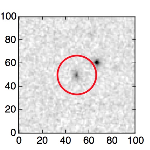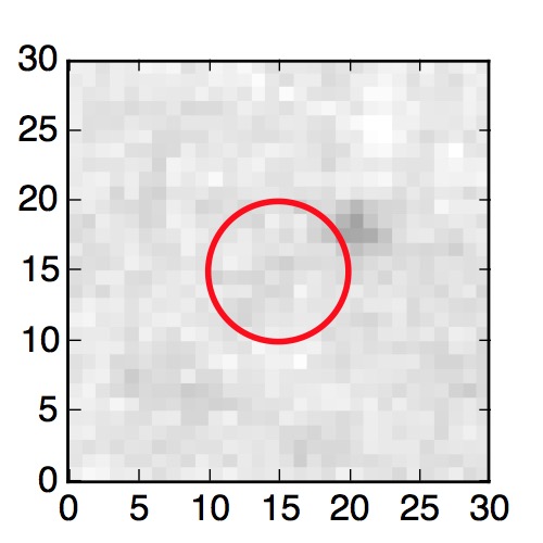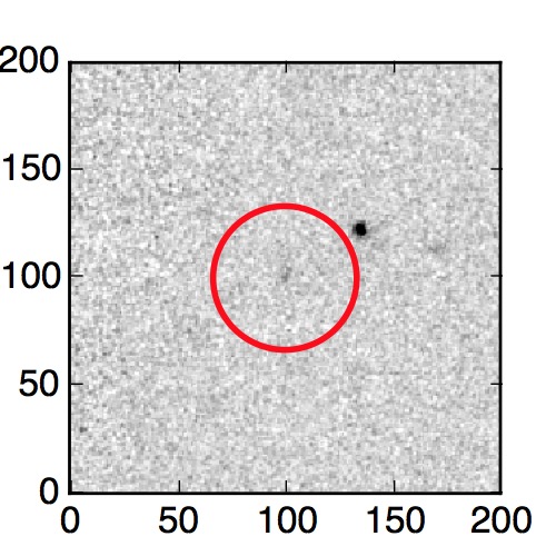 The red circle in the various panels is 1" in radius. The images are 6"x6".