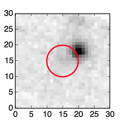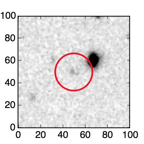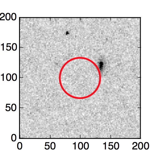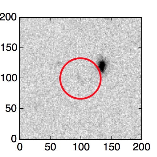 The red circle in the various panels is 1" in radius. The images are 6"x6".