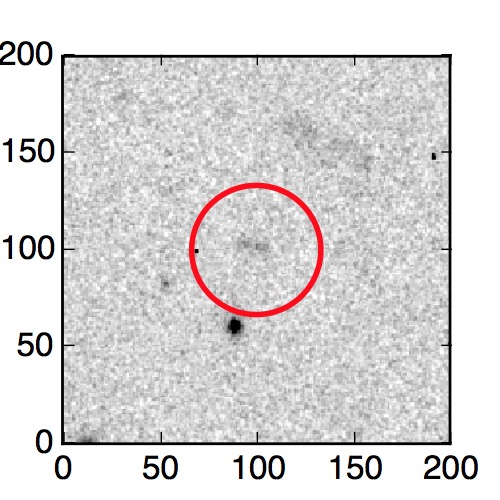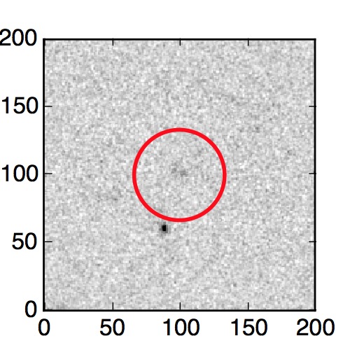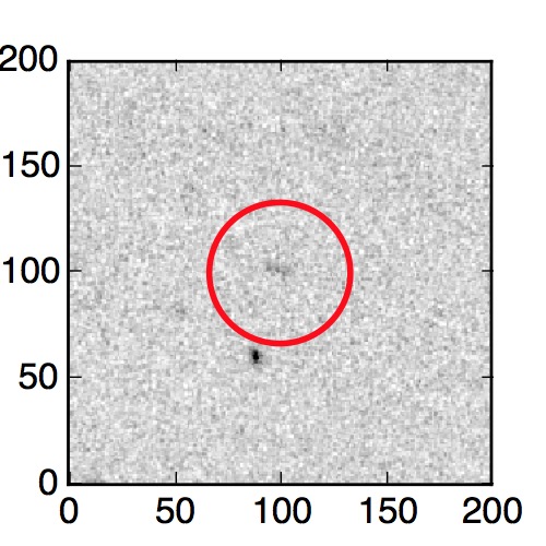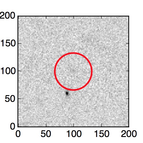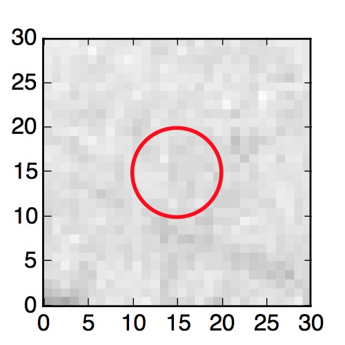 The red circle in the various panels is 1" in radius. The images are 6"x6".