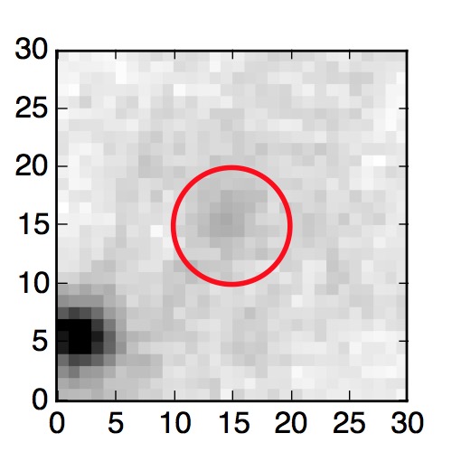 The red circle in the various panels is 1" in radius. The images are 6"x6".