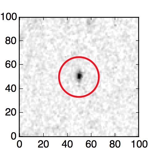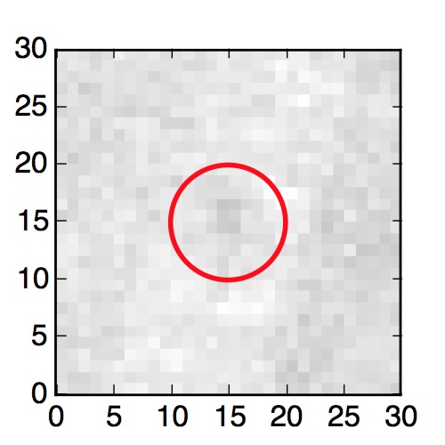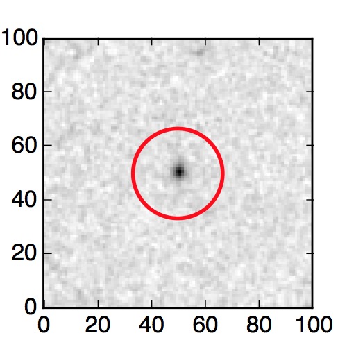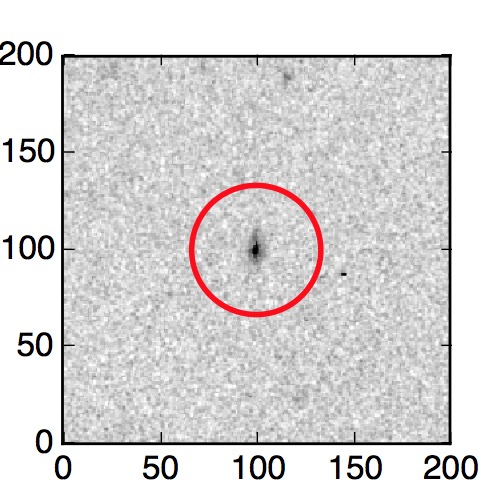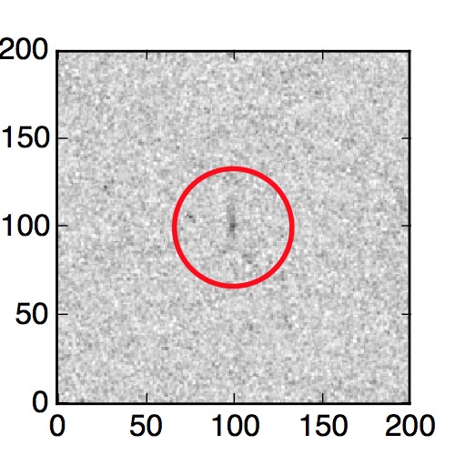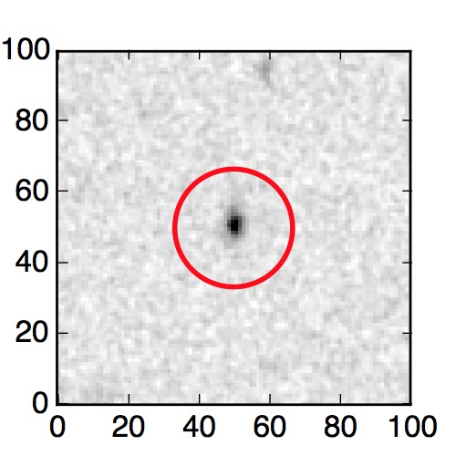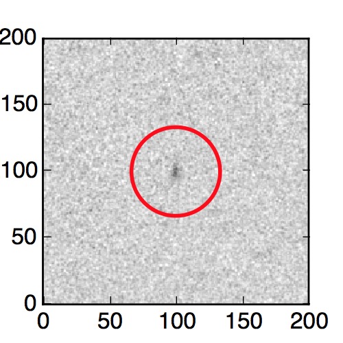 The red circle in the various panels is 1" in radius. The images are 6"x6".