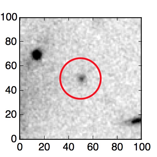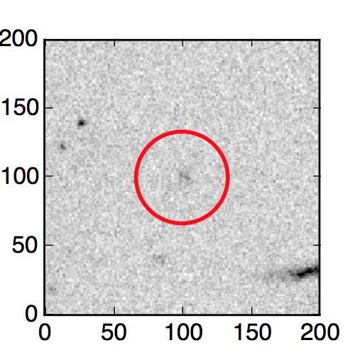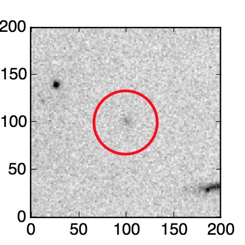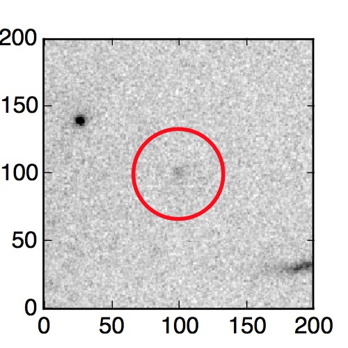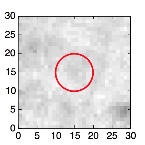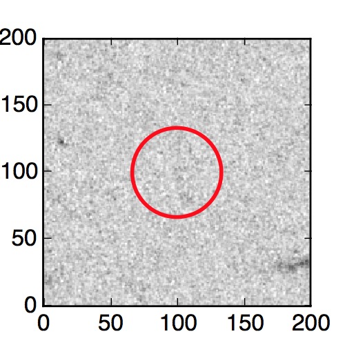 The red circle in the various panels is 1" in radius. The images are 6"x6".