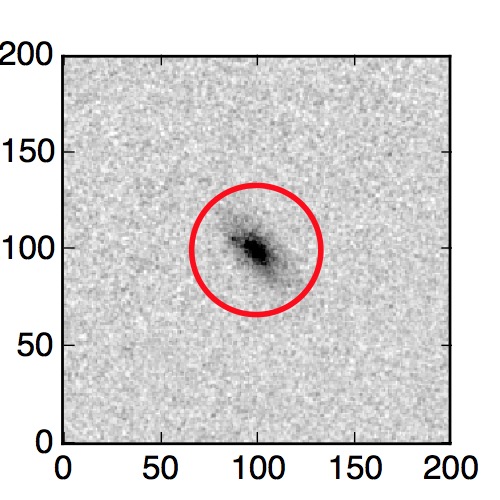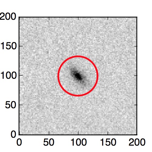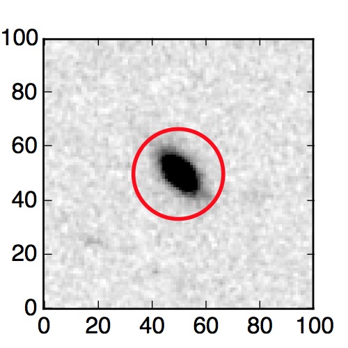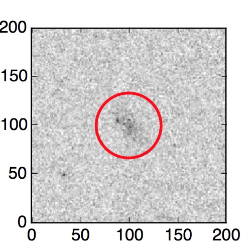 The red circle in the various panels is 1" in radius. The images are 6"x6".
