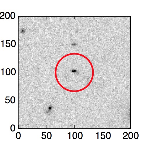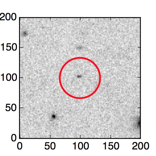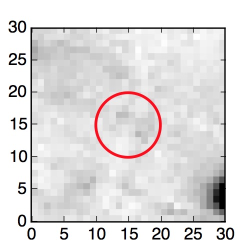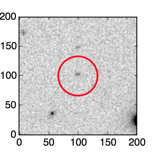 The red circle in the various panels is 1" in radius. The images are 6"x6".