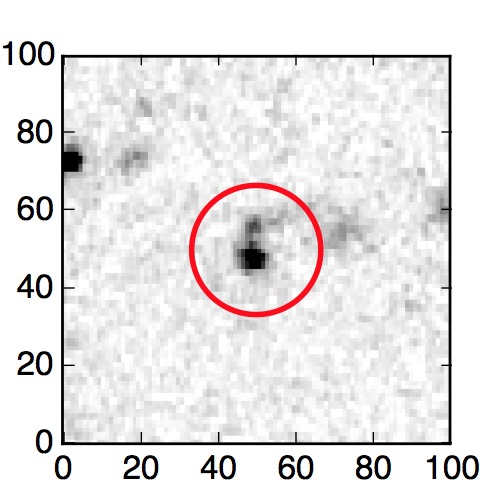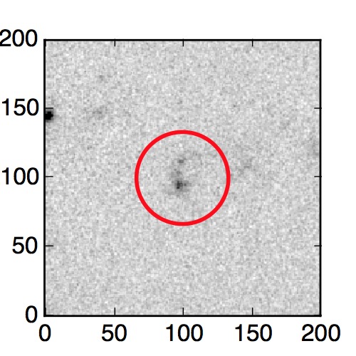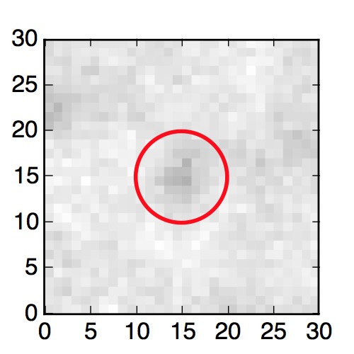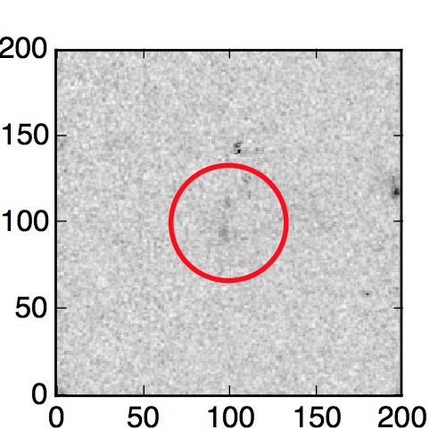 The red circle in the various panels is 1" in radius. The images are 6"x6".