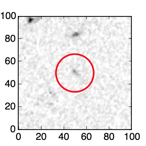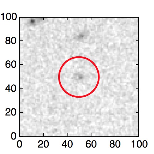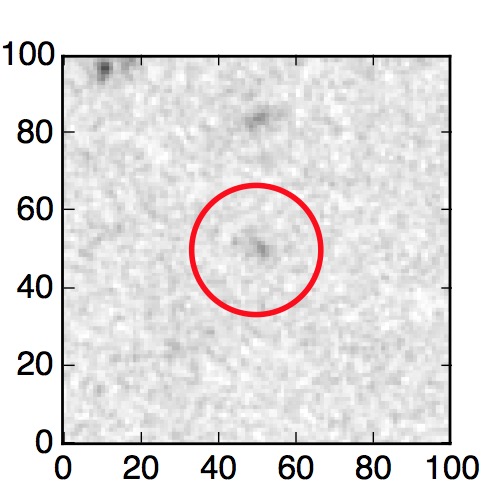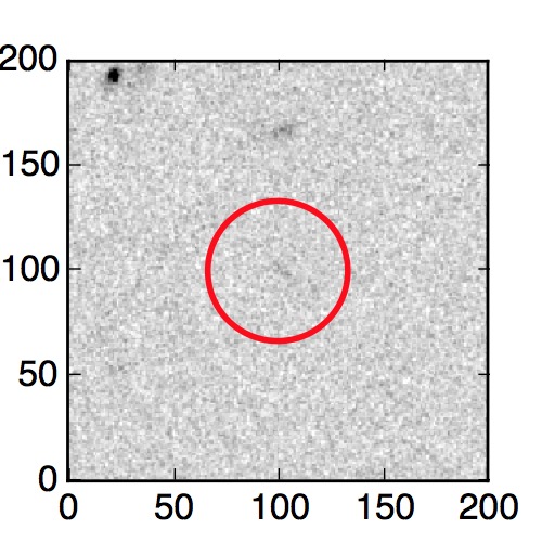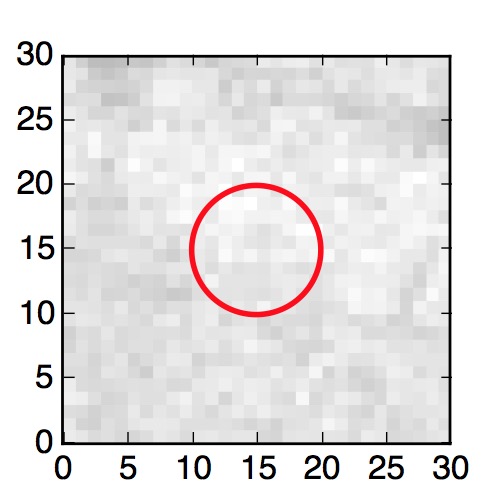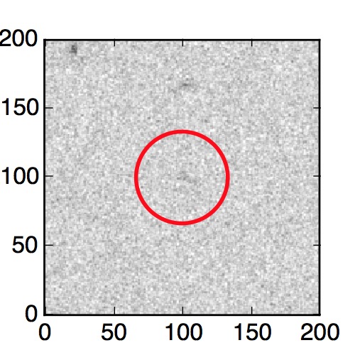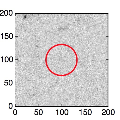 The red circle in the various panels is 1" in radius. The images are 6"x6".