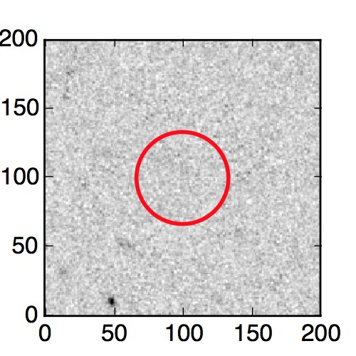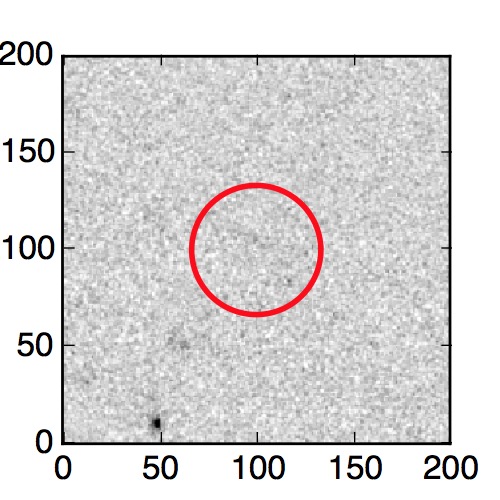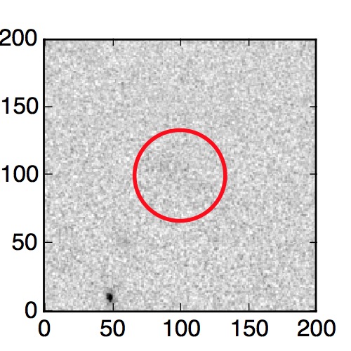 The red circle in the various panels is 1" in radius. The images are 6"x6".