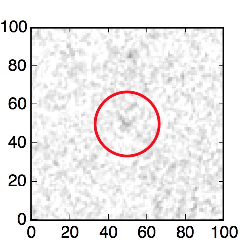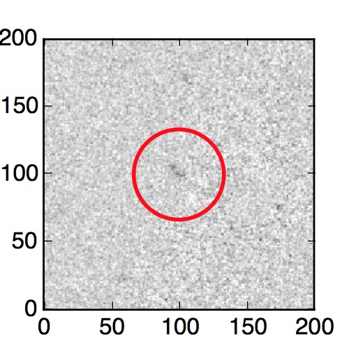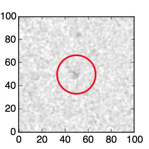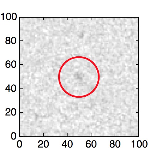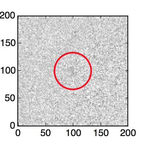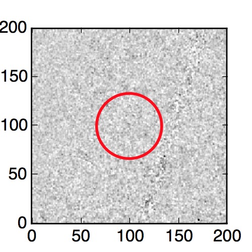The red circle in the various panels is 1" in radius. The images are 6"x6".