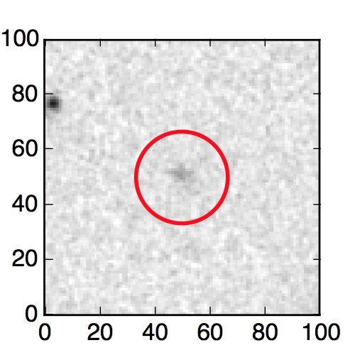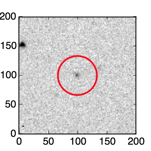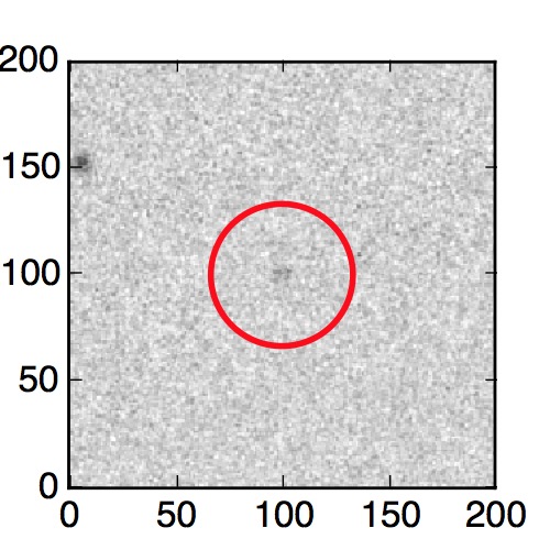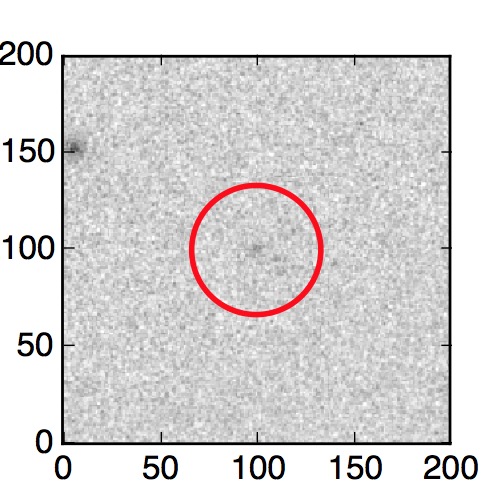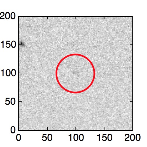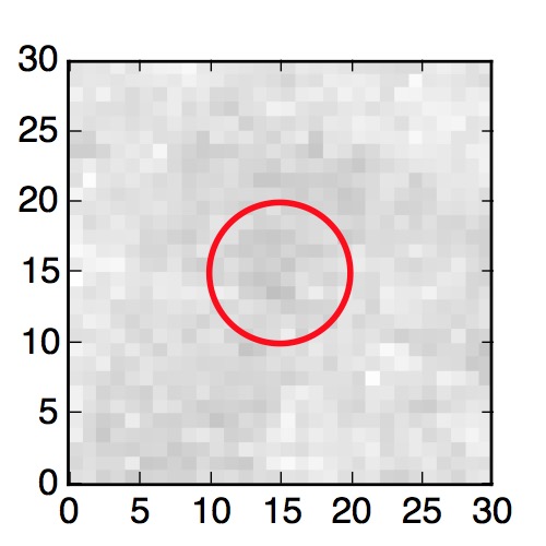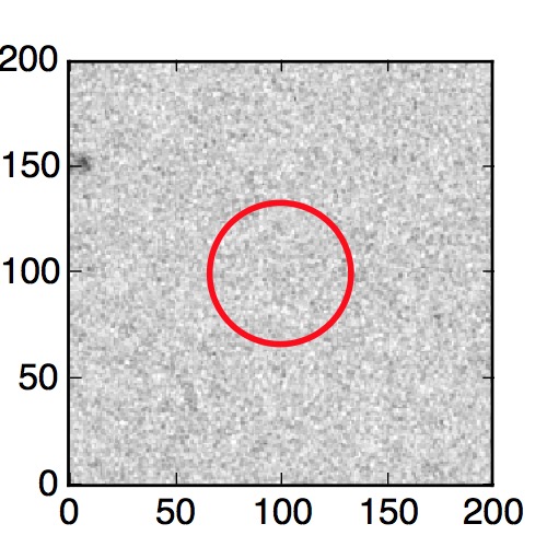 The red circle in the various panels is 1" in radius. The images are 6"x6".