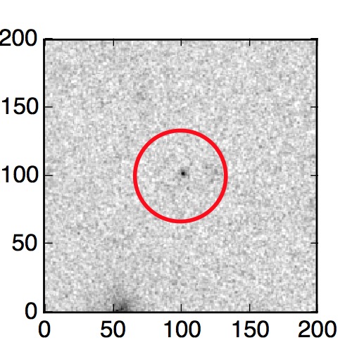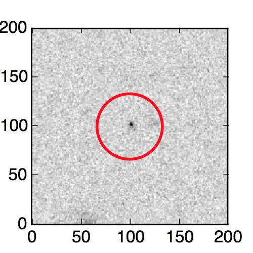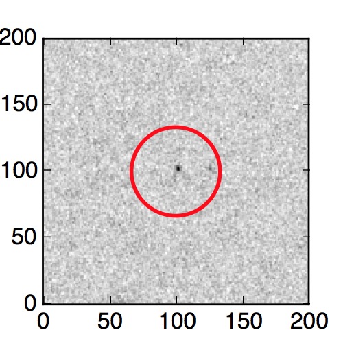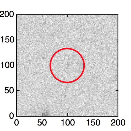 The red circle in the various panels is 1" in radius. The images are 6"x6".