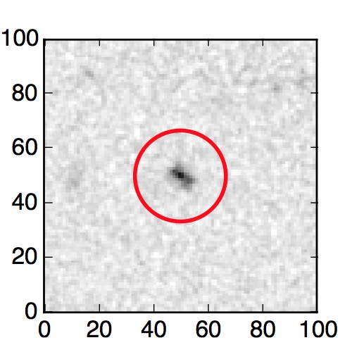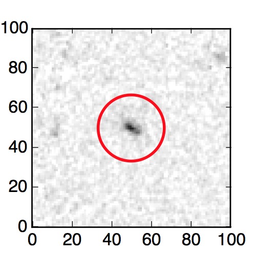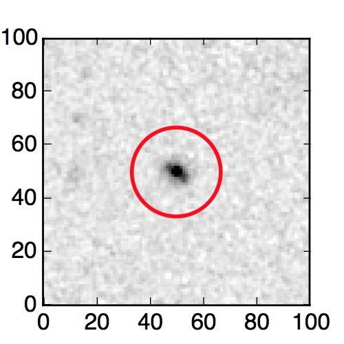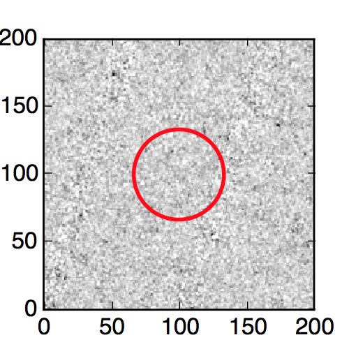 The red circle in the various panels is 1" in radius. The images are 6"x6".