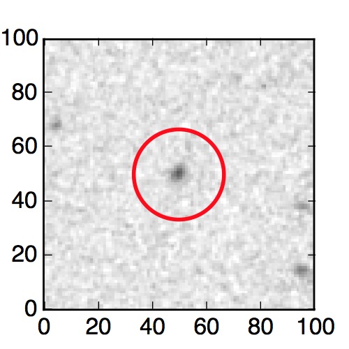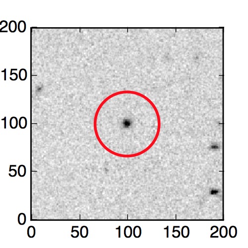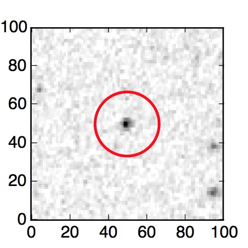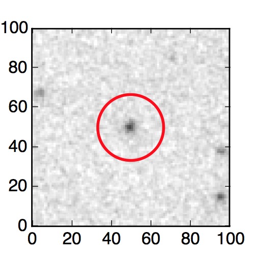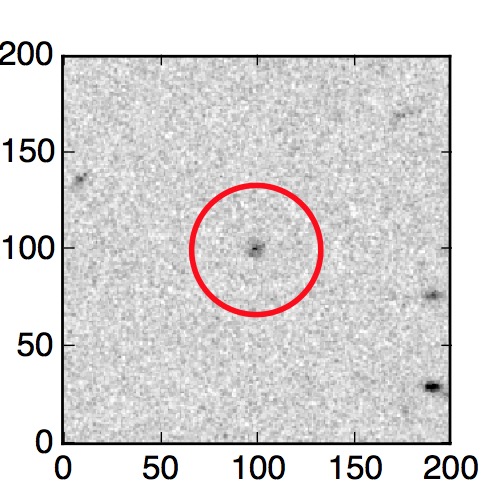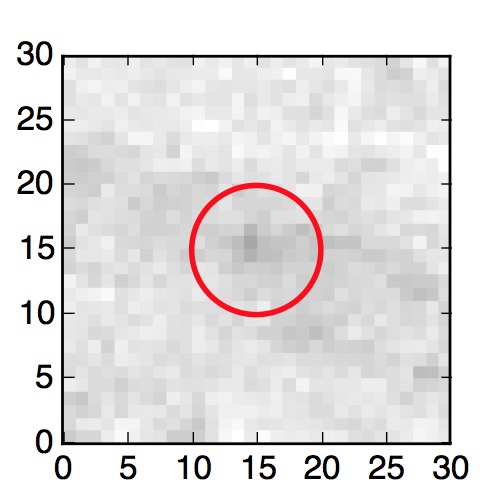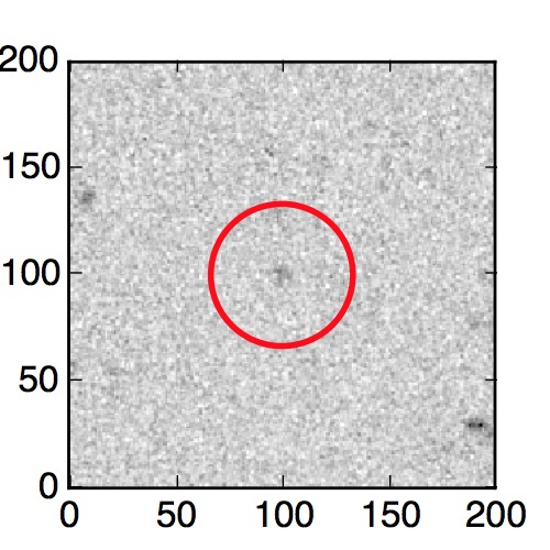 The red circle in the various panels is 1" in radius. The images are 6"x6".