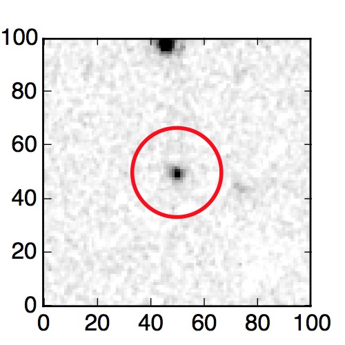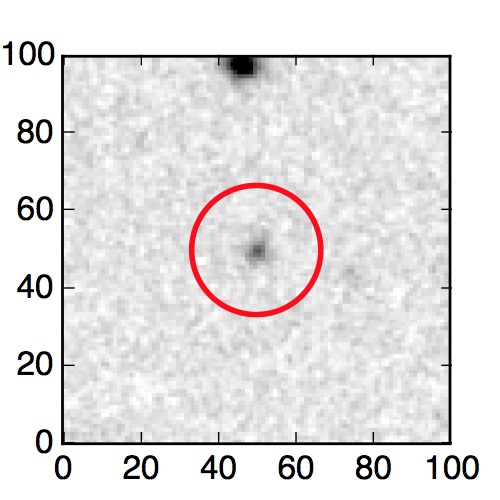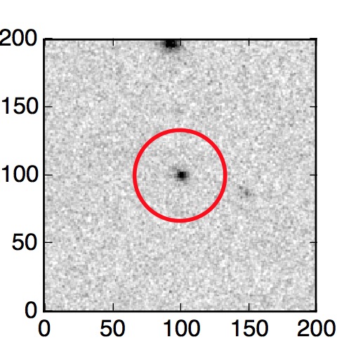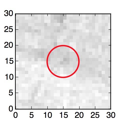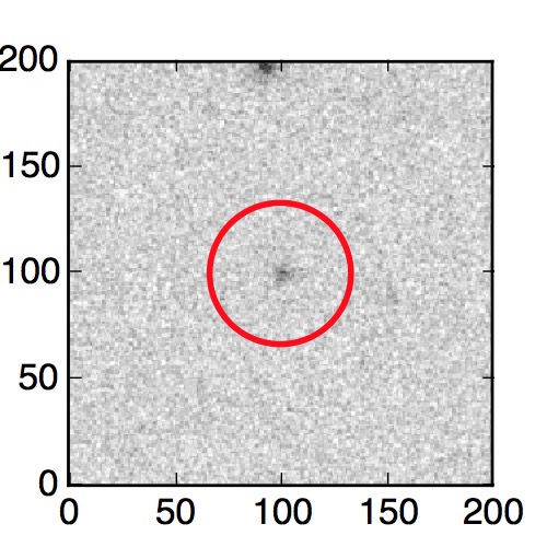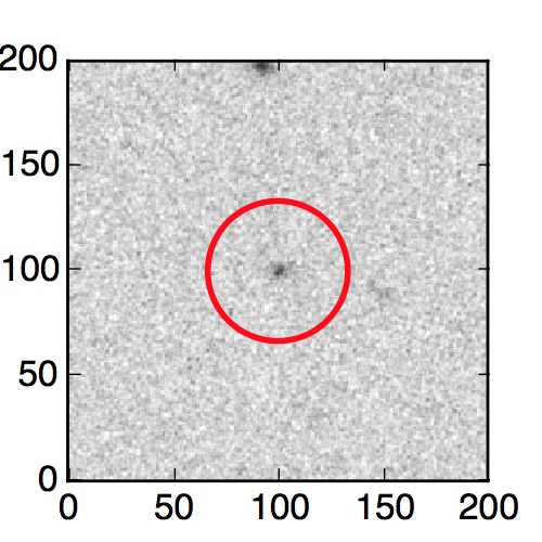 The red circle in the various panels is 1" in radius. The images are 6"x6".