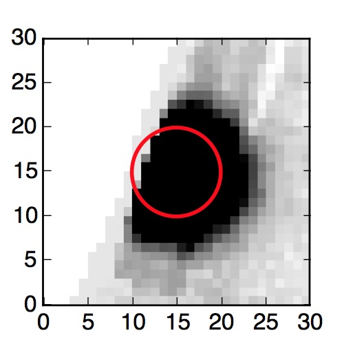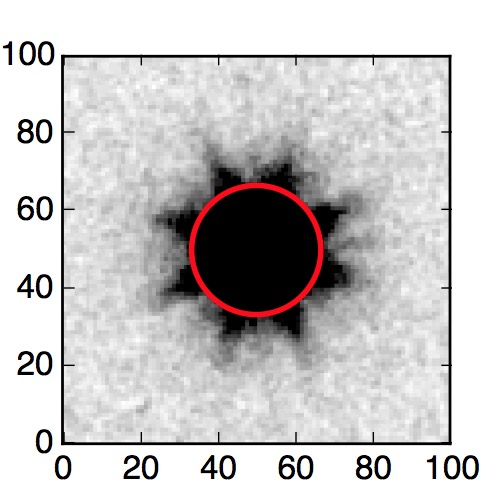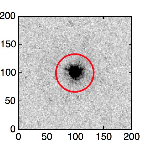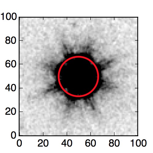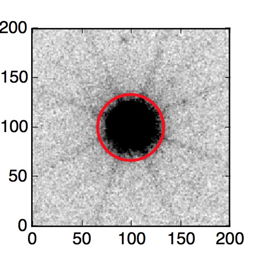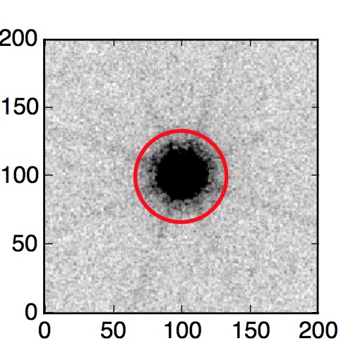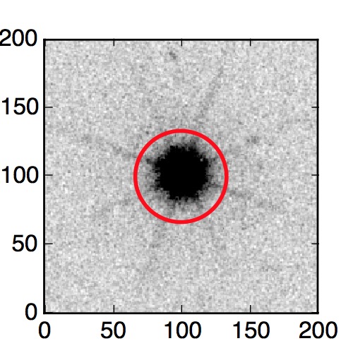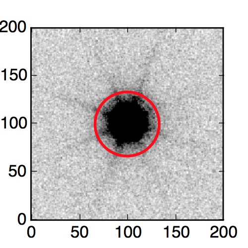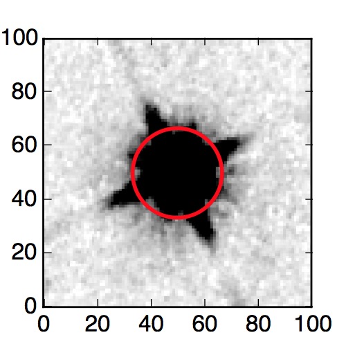 The red circle in the various panels is 1" in radius. The images are 6"x6".