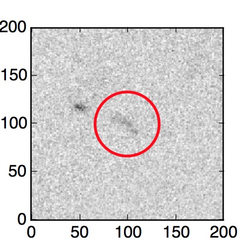 The red circle in the various panels is 1" in radius. The images are 6"x6".