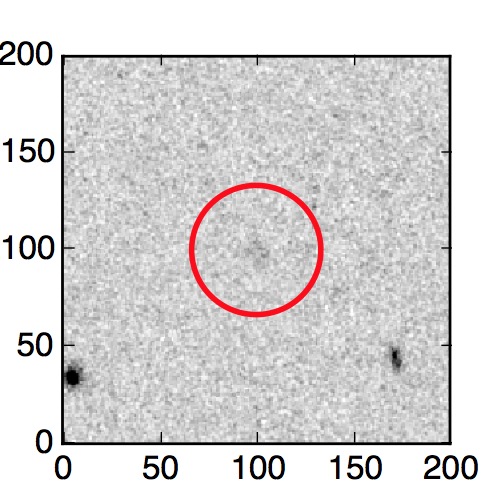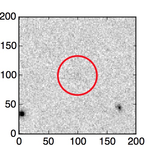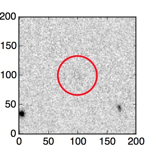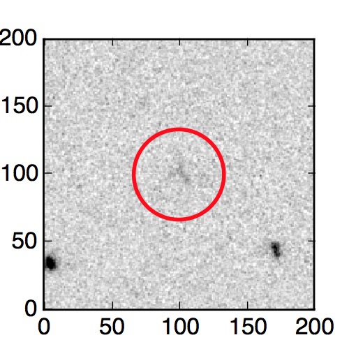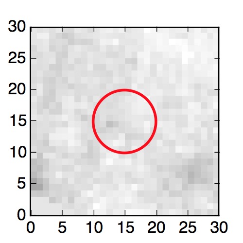 The red circle in the various panels is 1" in radius. The images are 6"x6".
