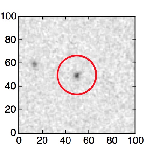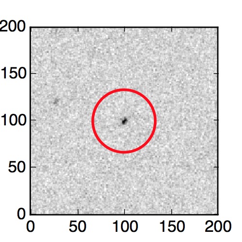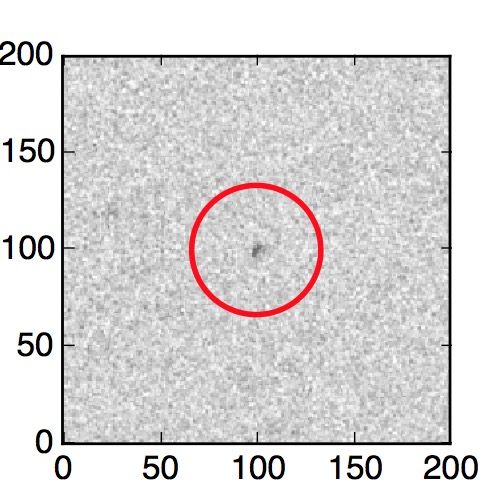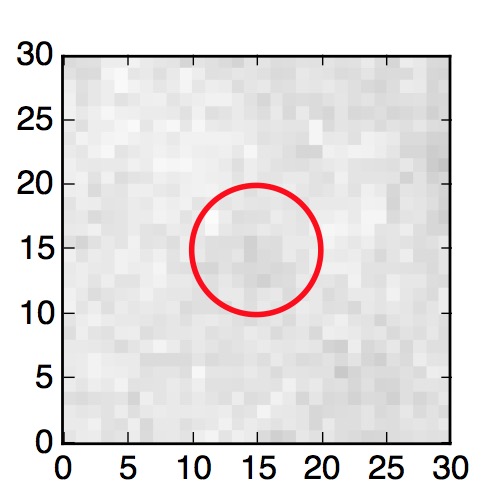 The red circle in the various panels is 1" in radius. The images are 6"x6".