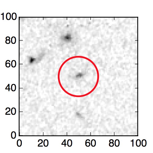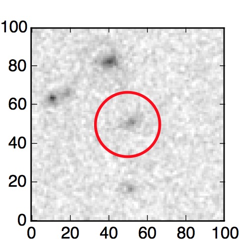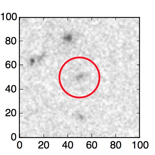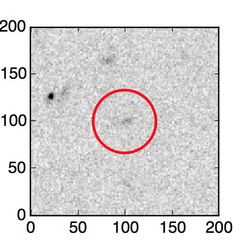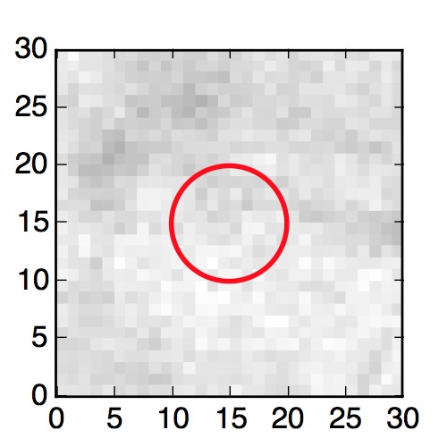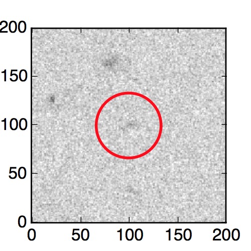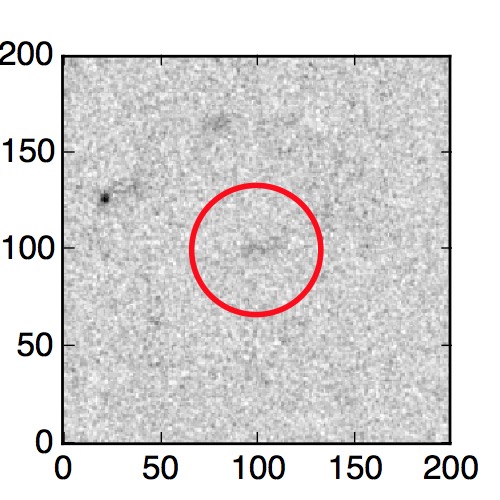 The red circle in the various panels is 1" in radius. The images are 6"x6".
