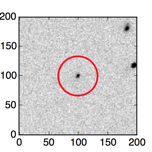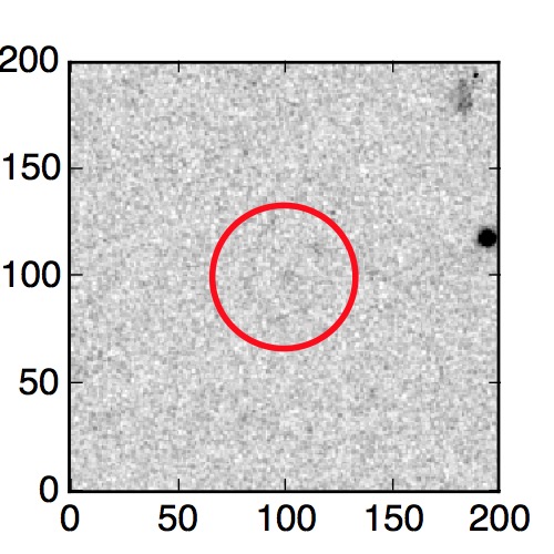 The red circle in the various panels is 1" in radius. The images are 6"x6".