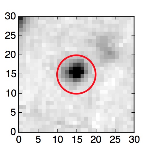 The red circle in the various panels is 1" in radius. The images are 6"x6".