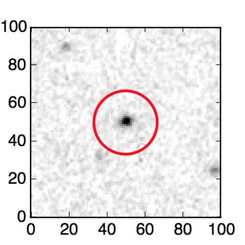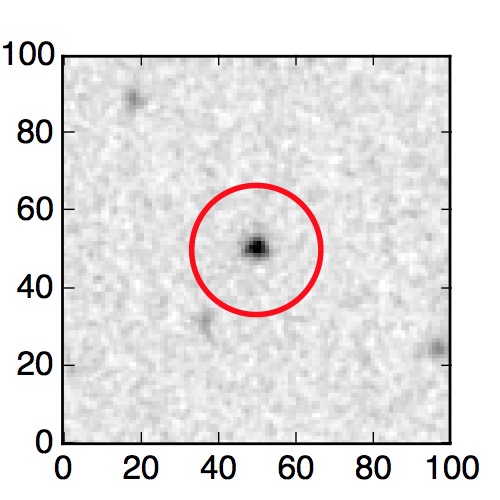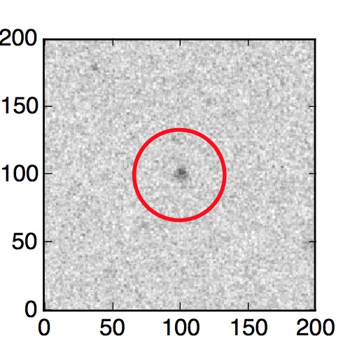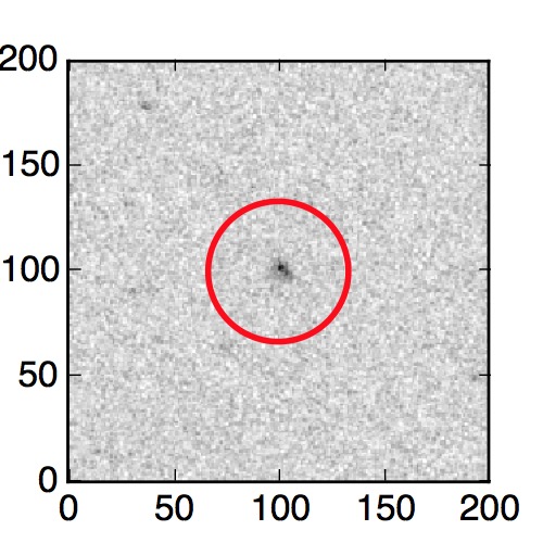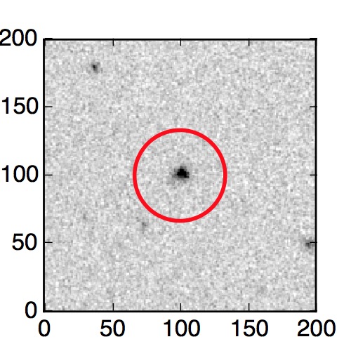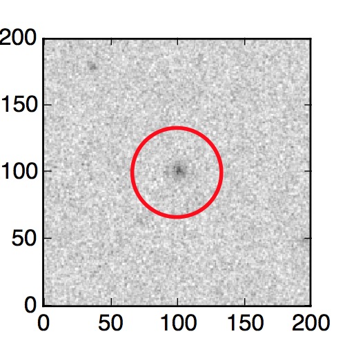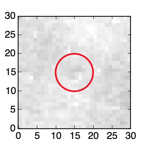 The red circle in the various panels is 1" in radius. The images are 6"x6".