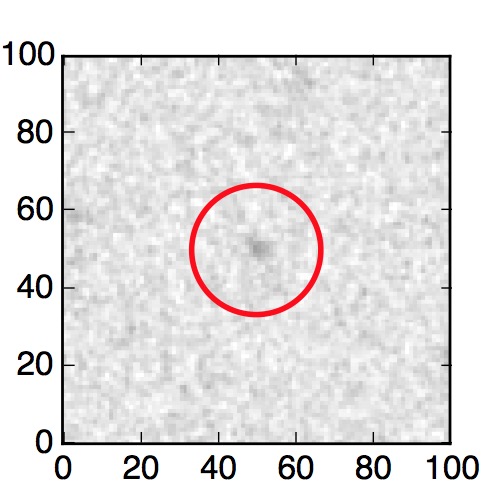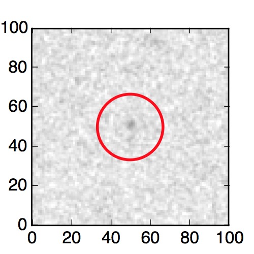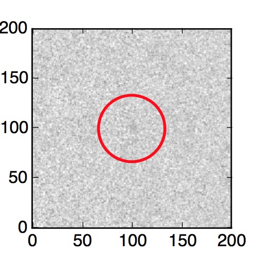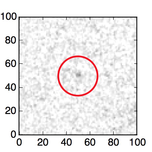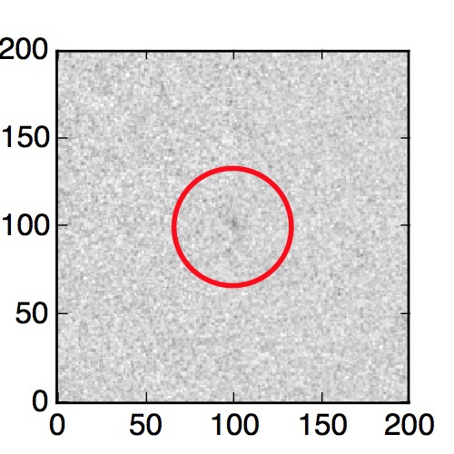The red circle in the various panels is 1" in radius. The images are 6"x6".