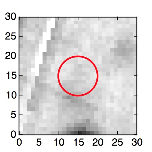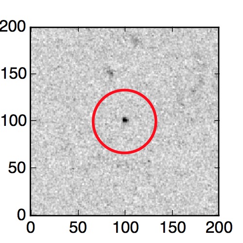 The red circle in the various panels is 1" in radius. The images are 6"x6".