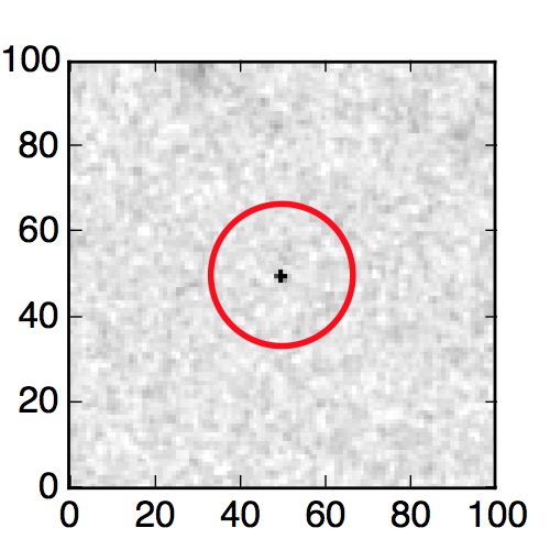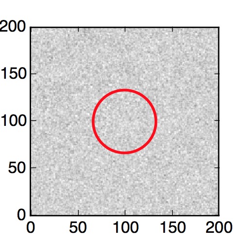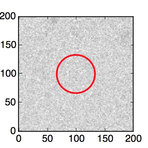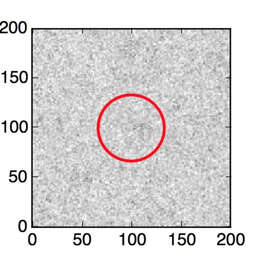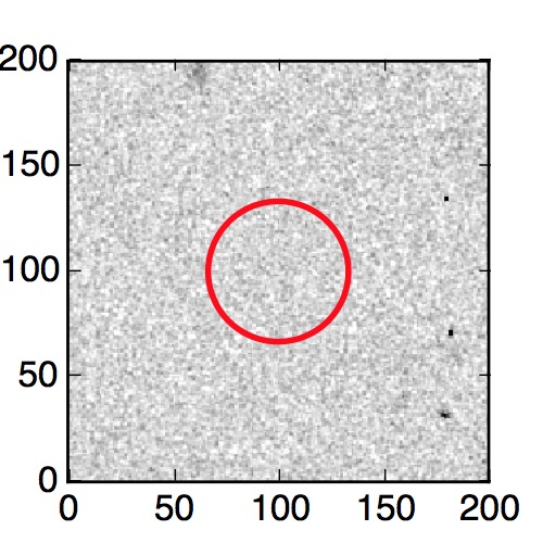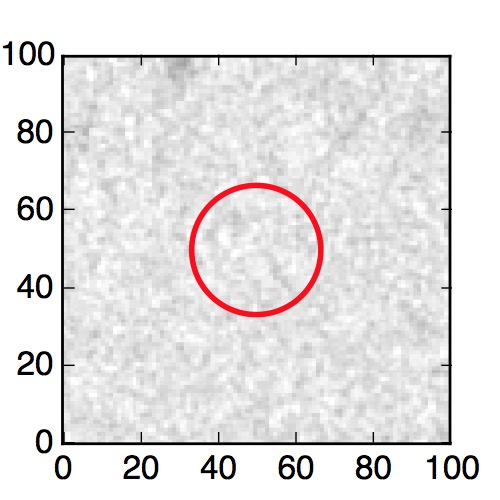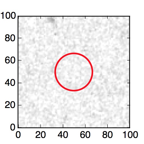 The red circle in the various panels is 1" in radius. The images are 6"x6".
