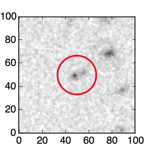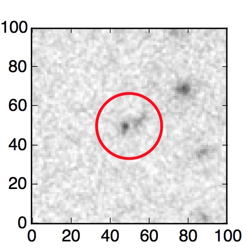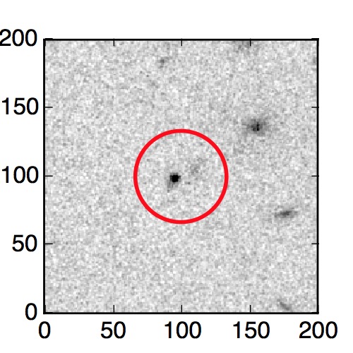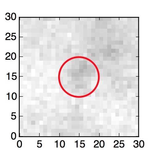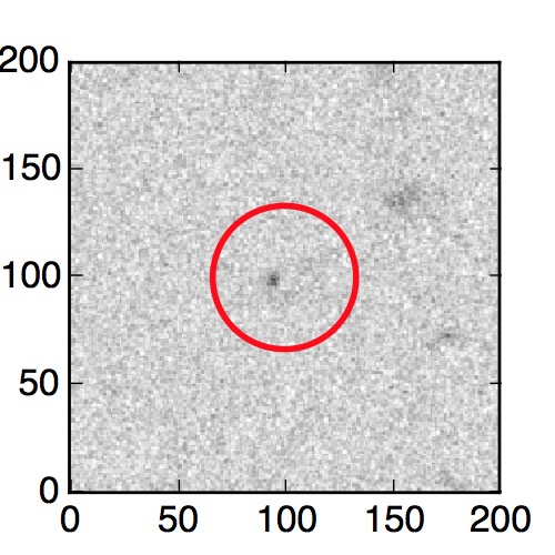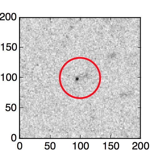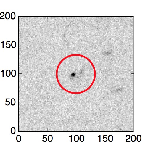 The red circle in the various panels is 1" in radius. The images are 6"x6".