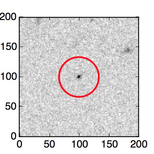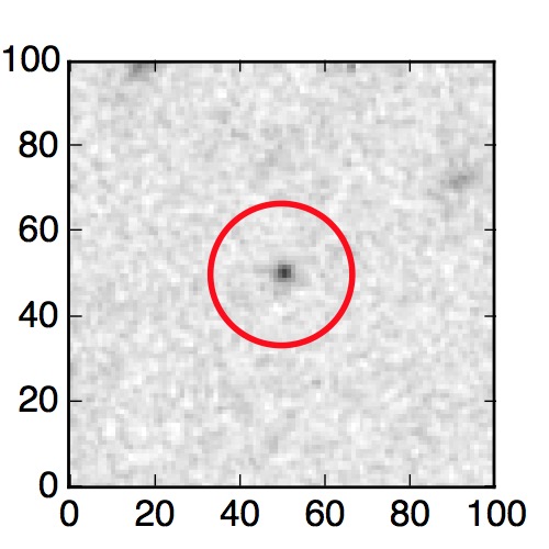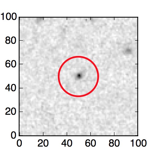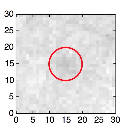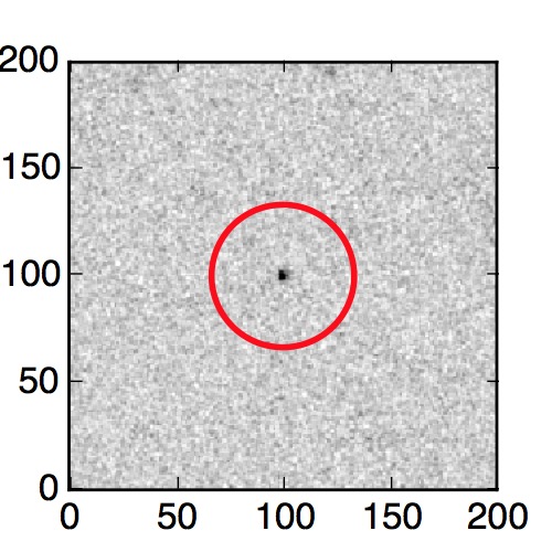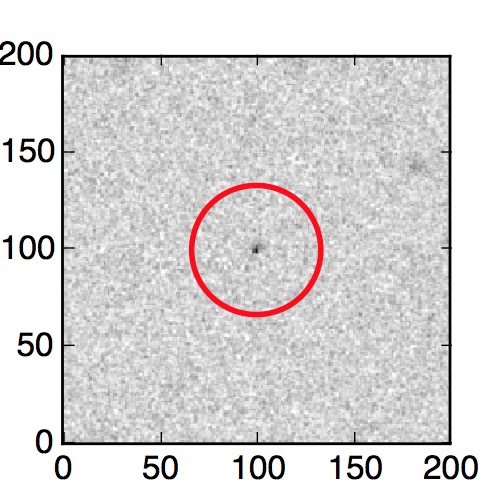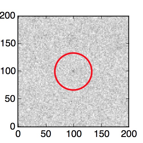 The red circle in the various panels is 1" in radius. The images are 6"x6".