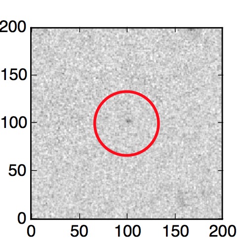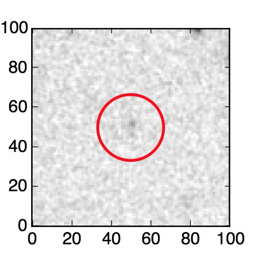 The red circle in the various panels is 1" in radius. The images are 6"x6".