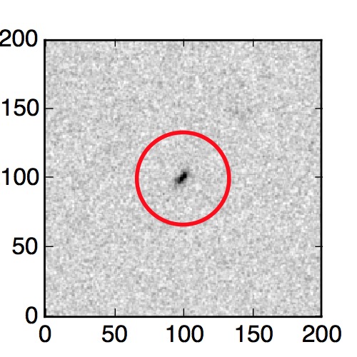 The red circle in the various panels is 1" in radius. The images are 6"x6".