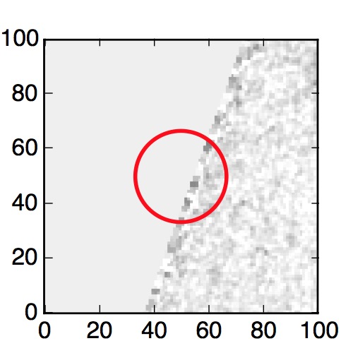 The red circle in the various panels is 1" in radius. The images are 6"x6".